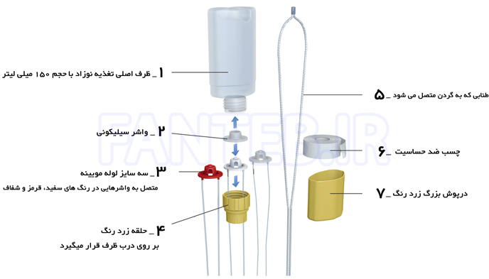 - ظرف اصلی تغذیه نوزاد با حجم 150 میلی لیتر