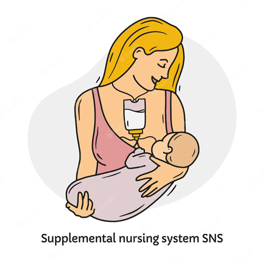 سیستم SNS به عنوان مکمل بر روی پستان مادر قرار میگیرد تا شیردهی به نوزاد راحتر صورت گیرد که البته برای مادرانی است که نوزادشان پستان آنها را برای تغذیه شدن میگیرد ولی شیر آنها کم است و تجربه نشان داده است که شروع شیر دهی باید توسط تحریک پستان و مکیدن انجام شود. یعنی در اثر تکرار مکیدن پستان توسط نوزاد راندمان شیر مادر افزایش پیدا میکند که در کنار کمبود شیر مادر این سیستم شیر کمکی نیز موجود باشد.این وسیله در جهت کمبود شیر مادر وانمود میسازد که پستان مادر پر از شیر است و همچنین به صورتی طراحی شده است که به تظاهر به موجود بودن شیر برای نوزاد او را تشویق میکند که پستان مادر را بیشتر بمکد.شما میتوانید نوزاد خود را بوسیله شیر طبیعی مادر ( که قبلاً بوسیله شیر دوش دوشیده شده ) یا شیر خشک تغذیه نمایید و با توجه به سایز ها لوله های مویینه و نیاز نوزادتان به شیر یکی از لوله ها را انتخواب کنید که البته توصیه میشود برای شروع کار پس از اینکه ظرف این سیستم را به میزان دلخواه پر نموده لوله مویینه در اندازه متوسط انتخاب کنید.