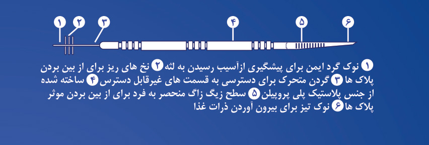 - یک سر نازک و منعطف برای فواصل میان دندان ها